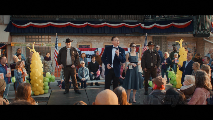 The visual presentation (2.35:1 aspect ratio) for "Clown in a Cornfield" offers an SDR viewing experience for the UHD. Compression issues are a