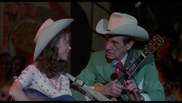 The previous Blu-ray release of Coal Miner's Daughter had a DTS-HD Master Audio 5.1 track that I liked quite a bit. This release, however, offers a Dolby Atmos track that I consider to be an upgrade. Before Lynn starts her musical journey and attains fame, the track has little out of the ordinary that it needs to accomplish, but even in these more mundane dialogue-driven scenes in the Webb house and outside the coal mine, viewers will notice that dialogue is cleaner and more lifelike. The lone gunshot and blasts inside the mine also have more realism and authority. Once her career begins to take off, though, the Atmos track has a chance to shine. The soundstage here opens up beyond that of the previous track, offering greater precision, crisp instrumentation, better sound separation, and overall improved fidelity. Bass presence is also improved, offering a better bottom-end to the musical performances yet remaining balanced and not overwhelming. Surrounds offer some support to ambient and environmental sounds, such as applause at the Grand Ole Opry, which is most welcome, but the single most important element of this track is how it handles the music, and it does so very well.