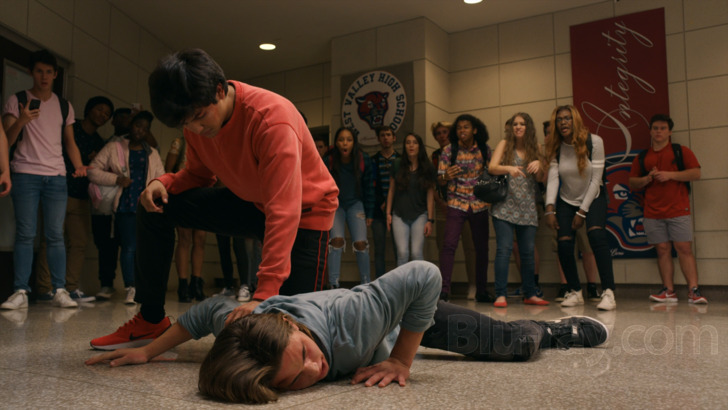 Although the lack of a UHD option is indeed at least a little disappointing, Sony has ensured that Cobra Kai looks as impressive as possible on Blu-ray and, in no uncertain terms, these rock-solid 1080p transfers should easily eclipse the quality seen on your average Netflix stream. Each of these thirteen discs has five episodes apiece -- no more, no less -- which translates to roughly 2.5-3 hours of content on each dual-layered Blu-ray. As expected, these variable bit rates remain extremely supportive from start to finish and the disc encoding seems to avoid and any all signs of compression artifacts such as banding, posterization, and macro blocking, meaning that all 65 episodes run smoothly. As seen in this review's collection of direct-from-disc screenshots (which includes a small assortment from each season), everything's handled well and there are absolutely no real concerns in the areas of fine detail, color representation, black levels, or overall stability. In short, this is basically a perfect effort and, aside from the aforementioned lack of a 4K release, I have exactly zero complaints with what we get here. It's just one more reason to bypass streaming.