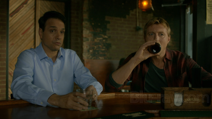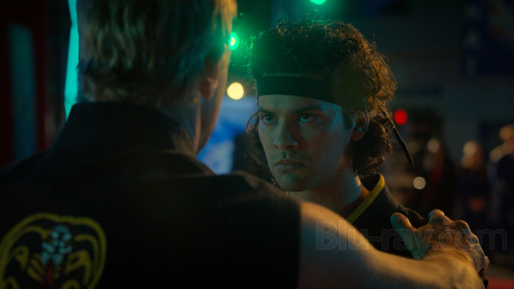 Since Cobra Kai was never created with Dolby Atmos is mind, these DTS-HD 5.1 Master Audio mixes come even closer to objective perfection and, again due to the latent compression found in streaming signals, Sony's Blu-rays should again exceed the expectations set by previous presentations. As implied by its subject matter, Cobra Kai doesn't always go for the sonic jugular since so many of its moments are dialogue-driven, but the series' sporadic fight sequences -- which are overwhelmingly well-staged -- regularly engage the rear speakers beyond simple punches and kicks with heightened and emotionally-driven effects, whereas other busy locations (school hallways, dojos) feature more organic atmospherics. The score by credited composers Leo Birenberg and Zach Robinson, who get to speak during at least one behind-the-scenes featurette included in this collection, is likewise well-represented with a a bold overall presence and strong dynamic range. In short, it's quality work and gets the job done with energy to spare.