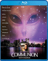 The AVC encoded image (2.36:1 aspect ratio) presentation for "Communion" appears to be sourced from an older master of the film. Detail is on the soft side, but skin particulars are appreciable on human characters and alien visions, which retain their rubbery appearance. Household interiors are open for examination, along with misty, metallic ship visits. Colors are slightly muted, but the cooler palette for "Communion" remains intact, tracking evening experiences and dimly lit encounters. Holiday hues add some primary power, with Halloween and Christmas favored, and costuming is varied. Skintones are natural, and the greenish, blackish appearance of the aliens is distinct. Delineation is satisfactory. Source is in decent condition. Mild banding is brief.