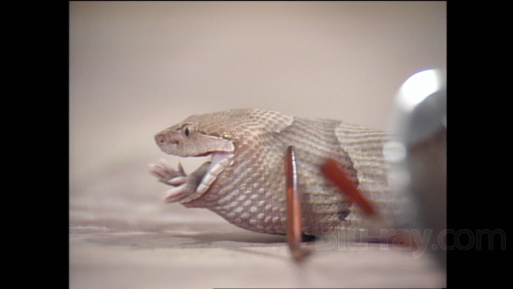 The release is presented in English uncompressed PCM 1.0 mono. The audio doesn't sound any better or worse than one might expect. The audio sounds serviceable and fine for a shot-on-video movie with a low budget. The audio dynamics are average. The sound is somewhat muted and average at best. A presentation well preserved by Terror Vision given the modest sound design to begin with for this production. Fidelity can't sound as good as modern feature-film productions because of the low-fi nature of the production itself and there isn't much that can be done about it. Audiophiles can moan about it all day long and it still won't make the film sound any better than it does. The hiss of the snake isn't going to shake the LFE too much.
