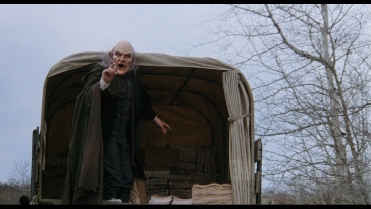 Creepshow 2 is presented in its original aspect ratio of 1.85:1 with mono, stereo and 5.1 audio.The last bit sounds like a good hangout spot for the Creep him(it?)self, but joking aside, this is an enjoyable upgrade from a 1080 presentation that I found to be by and large rather enjoyable itself when it was released in 2016, though that release sparked some controversy for some (to my eyes fairly slight) misframing issues. That's reportedly been corrected here and should obviously please diehard fans of the film, but I'd actually rate the enhancements to the palette courtesy of HDR / Dolby Vision grades as probably more overtly noticeable. Both the weirdly charming animated sequences and live action vignettes benefit from the burnished palette, and primaries in particular pop beautifully, especially in some of the outdoor material in the first vignette. As I mentioned in the old 1080 review, grain can be quite chunky at times, tending to understandably spike even more during the (many) optical effects sequences. It's especially rough looking (again) in the hitchhiker sequence, which also probably benefits the least from the HDR / Dolby Vision blandishments. In fact a lot of the hitchhiker sequence is kind of dowdy and brown looking, especially with regard to some of the driving sequences where skin tones can almost look dirty. All of that said and as someone who doesn't always like the appearance of grain in 2160 and HDR, things resolve commendably throughout, especially when considering there can be added compression challenges like dust blowing in the wind at various moments.