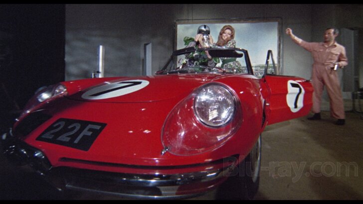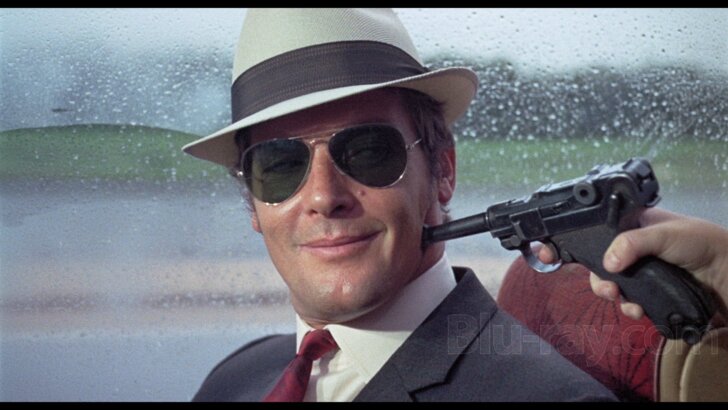 The release introduces an exclusive new 2K restoration sourced from the best available element for Crossplot, an interpositive. The overall quality of the visuals is quite nice, though in several areas it is easy to tell that the time has left its mark on the interpositive and ideally density levels should be better. (A great example is a sequence early into the film where Roger Moore and Claudie Lange are seen arguing in the taxi. This screencapture is from the sequence). Still, delineation, clarity, and depth are pleasing, and there are no distracting stability issues. Grain exposure is good too, but because of the density fluctuations it can be a bit uneven in some areas. Color balance is stable. However, saturation levels can be better. Also, I think that the overall temperature of the visuals is just a tiny bit cooler than it needs to be. I did not encounter any distracting surface imperfections, such as cuts, damage marks, and blemishes. All in all, Crossplot has a fine organic appearance on Blu-ray. (Note: This is a Region-Free Blu-ray release. Therefore, you will be able to play it on your player regardless of your geographical location).