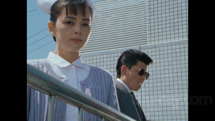 The films in this collection represent a period of film production in Japan in the late 1980s and early 1990s where films were made by the Toei Company specifically for home video. Beginning with Crime Hunter: Bullets of Rage, these "V-Cinema" titles were produced quickly and inexpensively, but afforded filmmakers significant freedom when it came to censorship, resulting in riskier content than what had been produced for cinema distribution.In brighter lit moments, which are thankfully frequent, Danger Point: The Road to Hell pops very nicely and provides some equally commendable detail levels. Some outdoor material in particular is among the best looking sequences in the entire V-Cinema set from Arrow. That plus is at least partially countered by some of the low light material, which can offer next to no shadow detail and which is frequently laden with a kind of blue / purple undertone. Grain is rather heavy at times, but only rarely has the mottled look that afflicts some of the other presentations in the set, though there are some passingly rough looking moments (see screenshot 7). Once again, very minor age related wear and tear can be spotted.
