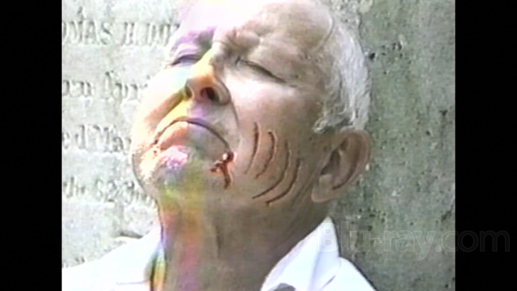 Nelson in a Halloween mask. The intent is to generate a shot-on-video romp with older men and a helmer who really has little idea what he’s doing.