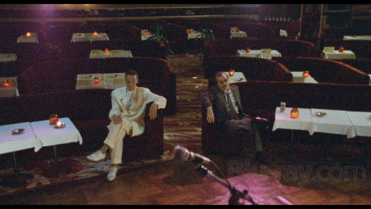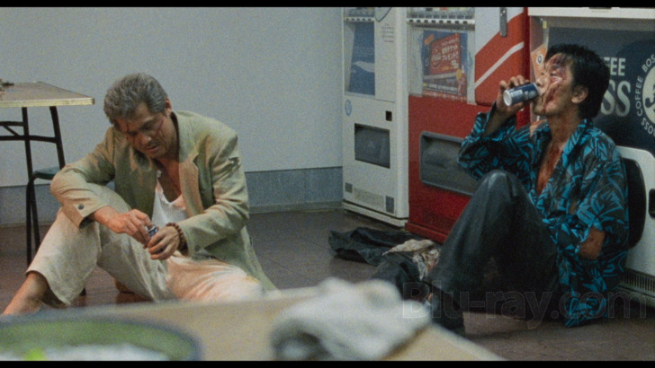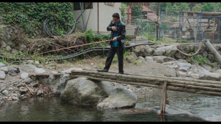 Deadly Outlaw: Rekka is presented on Blu-ray courtesy of Radiance Films with an AVC encoded 1080p transfer in 1.85:1. Kind of frustratingly, Radiance only sent check discs for purposes of this review, and so I'm not privy to any information contained in an insert booklet, though if their website and the verbiage included in their Region A release of Agitator (which they sent a retail final of for review purposes) are any indication, there's probably only a generic "high definition digital transfer" description. Some readers here may glance at screenshots in this review and wonder how this could have possibly gotten a 4.0 score, but it turns out some of the almost comically noisy looking moments that are ubiquitous throughout the film are actually there by design, an intentional gambit by Miike to try to evoke a 70's "grindhouse" aesthetic. I'm frankly not sure how successful that attempt is, at least in terms of how it actually looks here, and a lot of the footage frankly struck me as simply noisy looking rather than some recreation of how a 70's low budget affair actually appeared. Because of this stylistic choice, clarity and detail levels are pretty widely variant. The most consistent aspect to this transfer is a generally very healthy looking palette, which pops very expressively in the outdoor material in particular.
