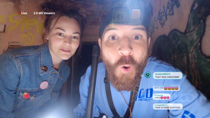 My birth state of Utah has rather sadly been in the news quite a bit lately as this review is being written both for a natural death and for an unnatural one, but for a hopefully more felicitous use of one of America's more scenic locales (in my not so humble opinion), albeit not exactly one that's going to get the approval of any Chambers of Commerce, check out Deadstream. Filmmaking couple Joseph and Vanessa Winters evidently reside in the state (at least according to the all knowing internets), and this appealing "DIY" outing was filmed at an abandoned property outside of Spanish Fork, though a t shirt focal character Shawn Ruddy (Joseph Winter) holds up advertising available merch mentions a tiny burg a bit further south, Payson. The underlying conceit of this horror comedy is not exactly innovative in any of its formulations, offering a standard "have to stay a night in a haunted house" plot device that in this case is combined with Shawn's livestreaming of the event for his YouTube-esque viewing audience, providing a found footage aspect. Despite an admittedly rote foundation, the film is often very funny and it has some great scares along the way as well.