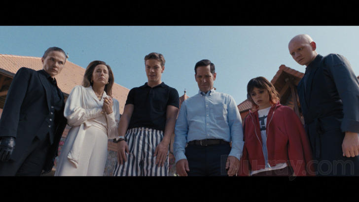 Death of a Unicorn features an intermittently impressive Atmos track, by which I don't mean to suggest that surround activity is problematic, only that "showy" Atmos effects can be most prominent in some of the "visionary" material experienced by both Ridley and then later Elliot when they've had up close and personal contact with various unicorns. Those moments feature clear whirlwinds of activity that are invitingly spatial and really surround the listener on all sides and from top to bottom. A number of other outdoor scenes have some really well done ambient environmental sounds (the spooky unicorn calls in the pool scene featuring Elliot and Spencer is one good example). Dialogue is rendered cleanly and clearly throughout. Optional English and Spanish subtitles are available.