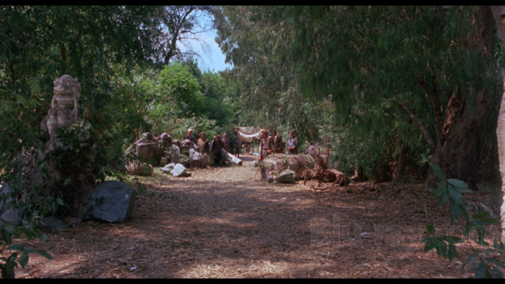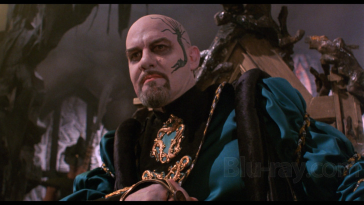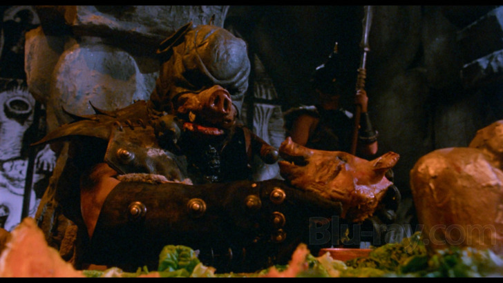 The 2.0 DTS-HD MA is working with the limited soundscape of "Deathstalker," also encountering age-related inconsistencies. Dialogue is mostly clear, handling on-set performance choices and a bit of sloppy ADR. Scoring isn't sharp, but functional, maintaining orchestral and choral support, hitting some crackly highs at times. Sound effects are blunt but appreciable.