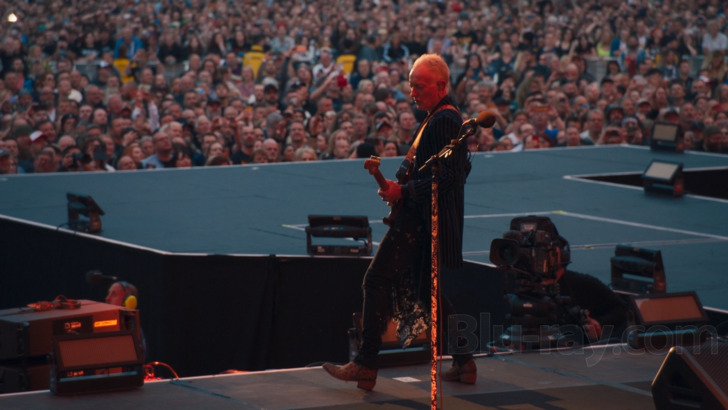 Def Leppard: Diamond Star Heroes Live From Sheffield is presented on Blu-ray courtesy of Mercury Studios with an AVC encoded 1080i transfer in 1.78:1. The huge outdoor stadium venue sees a concert long enough that natural lighting changes from day to night, and there's similar variety in the visual accoutrements accompanying the concert. Huge panels upstage offer a variety of pictures, graphics and other blandishments, and a really wide variety of stage lighting comes into play. That gives the entire concert a lot of visual interest and commendably detail levels are great looking for the most part. There are a few curious midrange shots that look just slightly blurry, which may suggest some on the fly focus pulling issues. Despite the interlaced presentation, I frankly noticed no egregious combing artifacts and there's a really nice fluidity to the visuals.
