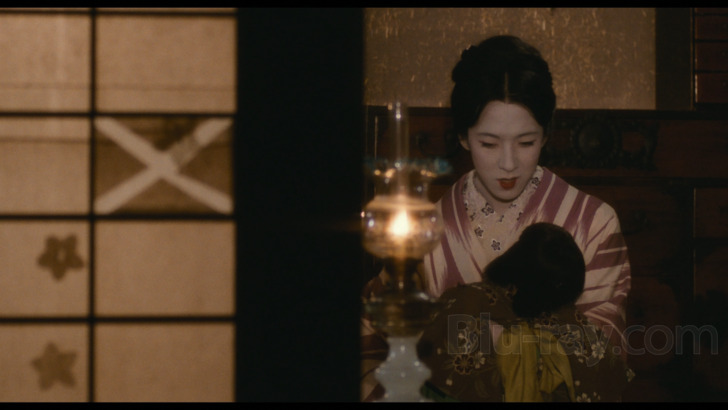 Demon Pond is presented in the aspect ratio of 1.85:1. Supervised and approved by director Masahiro Shinoda and actor Tamasaburo Bando, this 4K restoration was undertaken by Shochiku and Imagica Entertainment Media Services, Inc., from the 35 mm original camera negative. The original monaural soundtrack was remastered from the 35 mm original soundtrack negative by Shochiku MediaWorX Inc.As I mention in the Demon Pond 4K Blu-ray review , Criterion's 4K presentation kind of amazingly does not offer any HDR grades, something I personally find kind of head scratching, but which in case may make this 1080 presentation the default for a number of reasons. Without HDR, I'd state that the palette in more or less identical in both the 1080 and 4K presentation, while the increased resolution of the 4K presentation only exacerbates unavoidable issues that attend the glut of composited effects. This 1080 presentation boasts a secure palette for the most part, with some very appealing tones on both the warm and cool ends of the spectrum, and with a generally nice accounting of fine detail on things like practical sets and costumes, at least when lighting conditions allow. A lot of this film is rather dimly lit, and the prevalence of dark scenes combined with optical effects can at least intermittently create almost, well, seas of grain that have to be waded through to get to actual imagery. There is noticeable age related wear and tear in the early going in particular, including quite a bit of image instability during the opening credits. My score is 4.25.