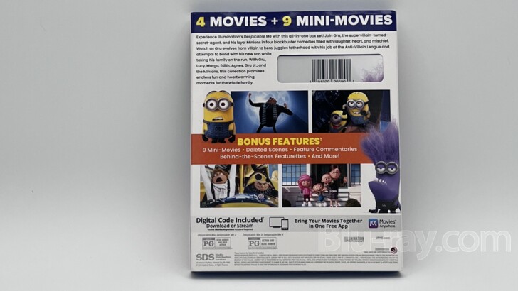 All four films, including the latest installment of Illumination's 'Despicable Me' franchise, 'Despicable Me 4', arrive on Blu-ray disc in this 'Despicable Me 4-Movie Collection' courtesy of Universal. The most recent chapter of this unstoppable and unabashedly silly and mischievous franchise sees the return of all critical members of the voice cast such as Steve Carell (Gru) and Kristen Wiig (Lucy) as well as the addition of new soon-to-be favorites like Joey King (Poppy Prescott). Previous installments also include a veritable who's who of Hollywood stars and A-list voice talent such as Julie Andres, Will Arnet, Ken Jeong, and Trey Parker, just to mention a few. Solid technical merits and numerous special features for each film, including many hilarious Minions mini-movies, round out the release. A slipcover and a Digital Code redeemable through Movies Anywhere are also included.