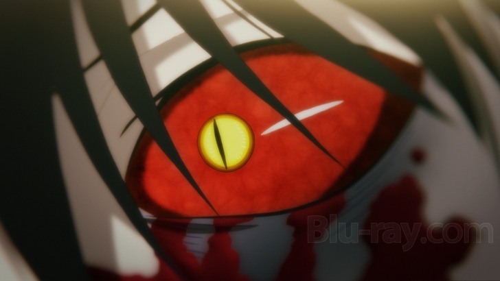 Some of you with long memories for pop music trivia may recall that Cher had a pretty sizable hit back in the day with a tune called Half Breed, which made it all the way to Number 1 on the charts in 1973 (it actually echoed Cher’s previous Number 1 single Gypsies, Tramps and Thieves from 1971 in that both are “ethnic” character songs told in the first person by an “outsider” female). The very success of that single may point out a kind of curious anomaly in popular culture, and that’s the enduring allure of those with might be called “hybrid” genealogies. There have been too many memorable “half and half” characters in fiction to even try to list, but in that regard it’s interesting to note that some characters’ bifurcated ancestry hasn’t always been immediately apparent. That particular aspect may be one way in which Devils’ Line attempts to set itself apart from some of its perceived anime siblings. With that in mind, this anime often brought back memories for me of another “hybrid”-centric monster(ish) story set in Tokyo which I reviewed years ago, Tokyo Ghoul: Season One, including but not limited to both series’ kind of weird, almost fetishistic, depictions of eyes (contrast the first screenshot in this review with the first screenshot in the Tokyo Ghoul: Season One Blu-ray review).