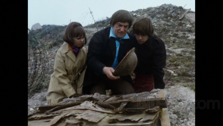 As with the colo(u)rized version of The Daleks, The War Games in Colour features Dolby Atmos and DTS-HD Master Audio 5.1 options, both of which may frankly (and understandably) not match current surround sound activity levels, but which noticeably open up all sorts of effects, including the kind of goofy interior clamor in the TARDIS. As with The Daleks, new sound elements have been interpolated, and they're blended seamlessly. New establishing shots and even a newly animated sequence with the TARDIS spinning madly through space offer some clear engagement of the side and rear channels. Dialogue is rendered cleanly and clearly throughout. Optional English subtitles are available.