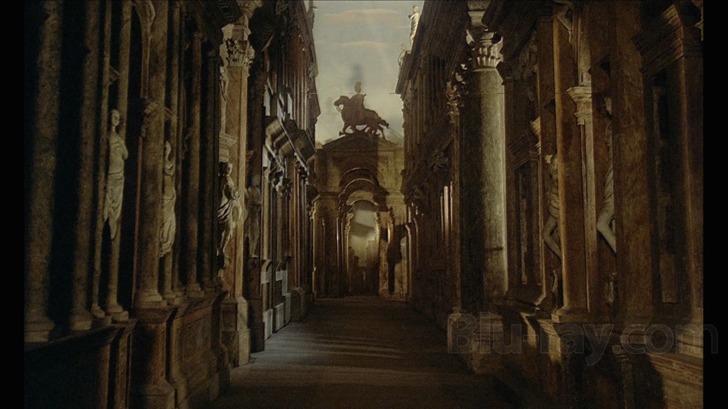 Don Giovanni is one of the few Olive Films releases that I can recall which offers more than one audio option. Both a lossless DTS-HD Master Audio 5.1 mix as well as DTS-HD Master Audio 2.0 stereo fold down are available on this Blu-ray disc, and both offer superior fidelity with very good reproduction of both the orchestra and vocalists. Losey adds to the "realistic" approach he opts for by introducing some minor ambient sound effects that are quite artfully mixed underneath the music, and while they're not distracting in the 2.0 mix, some may want to opt for the 5.1 mix if for no other reason than that this version prioritizes things a little bit more sensibly. Under such a controlled environment as a film shoot, with its necessary pre-recording, one wouldn't expect there to be any balance issues, and in fact there are none in either mix. Fidelity remains excellent and dynamic range, while not huge, easily encompasses everything from hushed soli to more boisterous tutti passages.