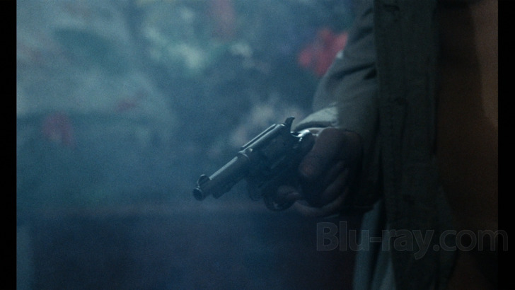 Don't Change Hands is presented on Blu-ray courtesy of Severin Films with an AVC encoded 1080p transfer in 1.66:1. The back cover of this release states this transfer was "scanned in 2K from the original camera negative". Considering the rarity of this title, and maybe even without considering the rarity of this title, this is often a pretty stunning looking transfer, one with a really beautifully suffused palette, some appealingly deep blacks and generally really nice looking detail levels. There are just a few interstitial moments where the image can suddenly degrade (aside and apart from the intentionally distressed 16mm porn material), and in fact I'm wondering if some of the (color) hardcore material may have been excised at some point, necessitating it being reintegrated into things. There are some minor signs of age related wear and tear, but nothing very debilitating. Grain resolves naturally for the bulk of the presentation, with just a few slightly noisy looking moments in some of the darkest material.