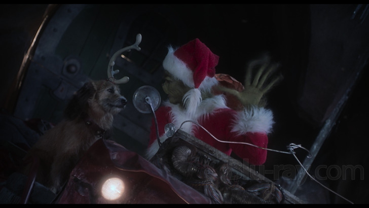 thanks to the Dolby Vision grade the film has been given. For instance, at the 32-minute mark, as the Grinch stands outside his cave hating the Whos,