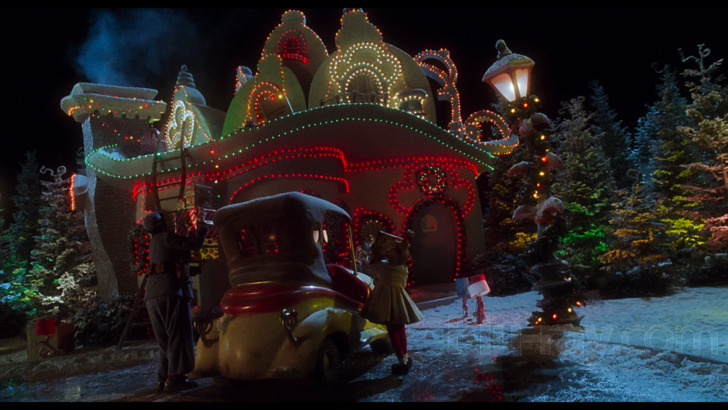 definition and detail of the Grinch's fur vanish, becoming hazily fuzzy and lacking crispness. Moments later, though, as the scene switches to Whoville,