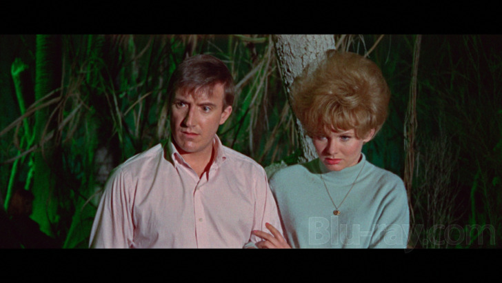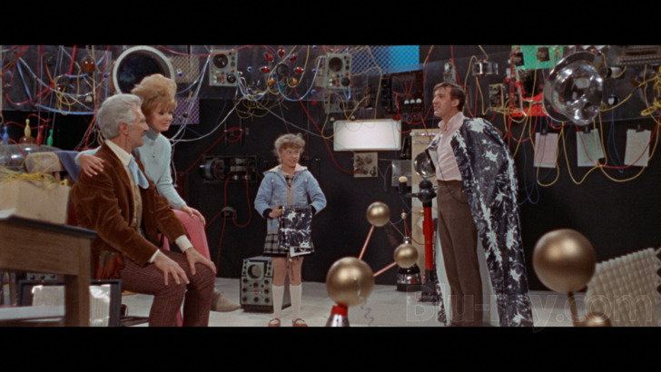 This restoration was scanned in 4K - 16 bit by Silver Salt Restoration - UK, from the original Techniscope 2-perf 35mm negative. Wet-gate scanning technology was used to remove severe scratching on the source elements.Some regular visitors to this site may recall I had the great good fortune to spend a day at Silver Salt last December, which resulted in this interview, in fact with some of the very people who worked on this restoration. This is another sterling example of the typically excellent and meticulous work Silver Salt brings to their restoration processes, and perhaps due at least in part to the wet gate transfer, I might rate the vividness of the palette to be arguably a bit more impressive here than in Daleks' Invasion Earth 2150 A.D. The big plus of this 4K version is the brilliance of what might be termed a Bava-esque palette, and the HDR and Dolby Vision grades bring real luster to purples, greens, reds and blues in particular. One potential minus is the increased visibility or at least perception of an at times rather heavy grain field, this despite the relative absence of old school composited effects. I found the 4K presentation to be just slightly darker looking overall than the 1080 presentation, probably due at least in part to the HDR / Dolby Vision grades. Detail levels are typically excellent, and there are some noticeable if admittedly minor upticks in fine detail on things like costume fabrics or props (including the kind of hilarious ability to see finger smudges on Daleks) when comparing this presentation to Severin's excellent 1080 disc.