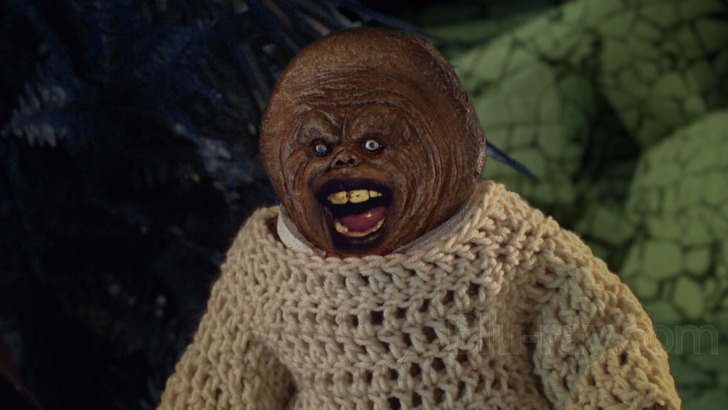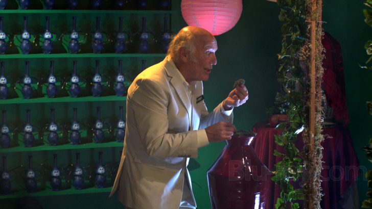 Evil Bong High 5! is presented on Blu-ray courtesy of Full Moon Features with an AVC encoded 1080p transfer in 1.78:1. This presentation offers another generally competent digital capture that is perhaps muddied just a bit by a prevalence of somewhat dark scenes that tend to feature a surplus of greens and browns. That said, detail levels on things like the kind of funny knit sweater the Gingerdead Man wears can be quite good (see screenshot 3). The green screen work in this film is not exactly state of the art, and so "seams" can definitely be spotted at times. Some of the "real world" footage in the shop can look a tad murky, with a slight deficit in detail levels.