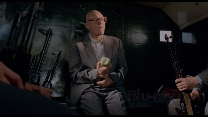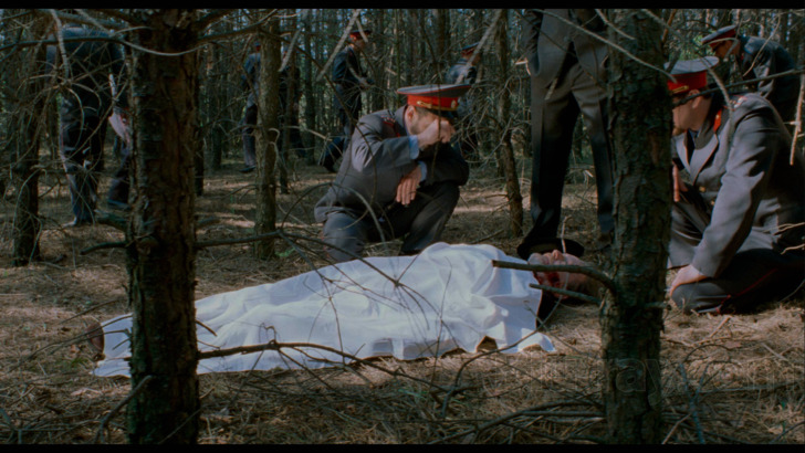 Less impressive is Evilenko's DTS-HD Master Audio 5.1 surround track, which struggles to create a convincing, immersive Russian hellscape for its madman to inhabit. Rear speaker activity is decent and directionality is more than adequate, but there's a disconnect between the channels, particularly the front and rear soundscapes, that makes for a disjointed experience. Much of Evilenko is front-heavy... until it isn't. When Andrej boards a train or hunts in the forest, environmental effects are plentiful. In most other scenes, though, we get little more than sparse ambience. LFE output is rather weak in the knees too, making for less impactful dynamics. Dialogue is at least clean and clear at all times, prioritization is spot on, and the film's score is fairly well supported.