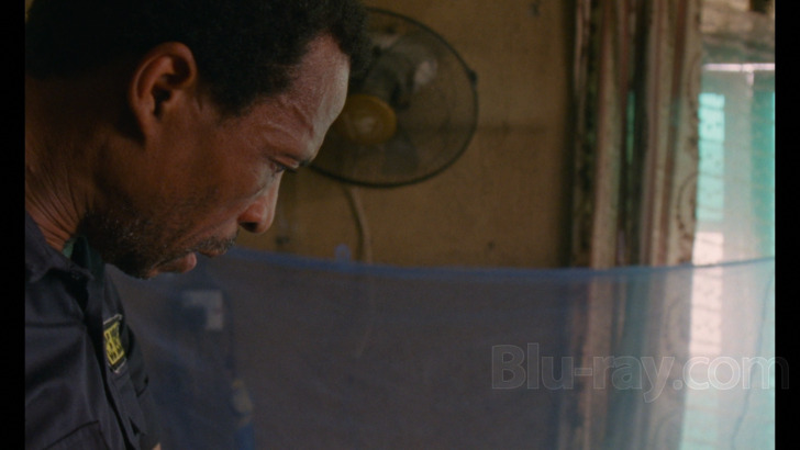Eyimofe (This Is My Desire) is presented in its original aspect ratio of 1.66:1 [sic]. This new digital transfer was created in 2K resolution on a Spirit DataCine from the 16 mm original camera negative. The 5.1 surround soundtrack was remastered from the original digital master audio files.This is a nicely organic, and one assumes intentionally gritty, looking presentation that offers a tightly resolved (if quite heavy) grain field. The smaller source format can lead to intermittent deficits in fine detail at times, and there are a couple of kind of curious looking moments where it seems like maybe a defective lens was used (see screenshot 19 and notice the kind of quasi-fringing in evidence), but on the whole detail levels in midrange and especially close-ups are quite commendable. The palette is rather lustrously offered, and there are incredibly vivid pops of color among the general dowdiness of what is more or less ghetto life. Several sequences have a slight yellowish skew which may alter the "naturalness" of the palette.