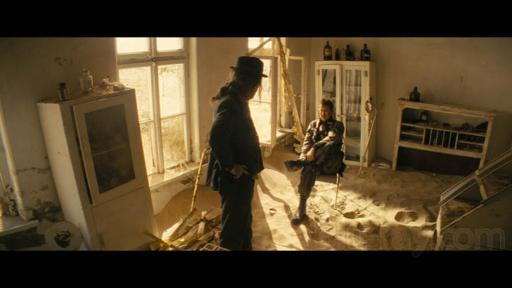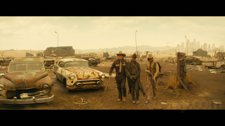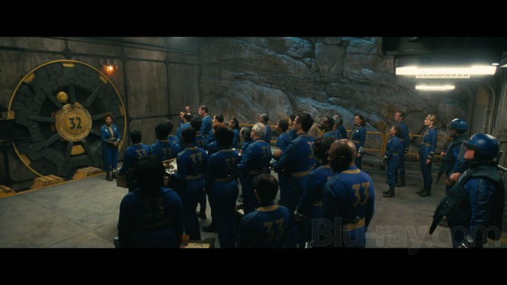 Shot on 35mm film, Fallout can't help but impress in its native 4K and, on almost all fronts, surpasses its streaming counterparts with energy to spare. As presented on this trio of triple-layered discs, the majority of these eight episodes play without a hitch* thanks to a high variable bit rate that gives this content plenty of room to breathe while serving up tack-sharp detail, excellent color reproduction, deep black levels, and a fine layer of film grain. With one exception detailed below, obvious compression anomalies such as macro blocking and banding are nowhere to be found, even in some cases where the bit rate drops into much lower 30-40 Mbps territory and, as such, makes Fallout one of the best-looking TV-on-4K releases around. Die-hard fans will have a lot of fun picking out any number of presumed Easter eggs lurking in the background, now easier than ever thanks to the clarity and visual punch of these 2160p/HDR10/Dolby Vision transfers that help bring every aspect this meticulously-designed series to life.