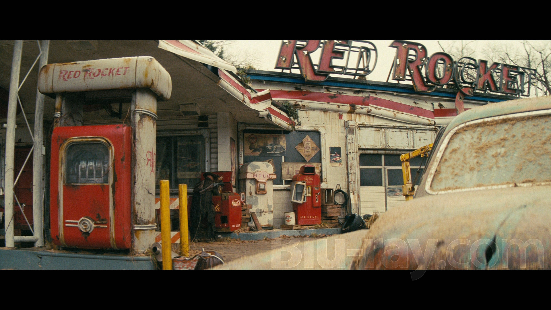 As always, please see my recent review of the separate 4K edition for a general overview of Fallout: Season One's visual aesthetic, which combines impressive set designs, practical effects, and CGI to totally immerse viewers in the weird, wild world of The Wasteland and everything below it. Shot on 35mm film, this old-school approach (relatively speaking) affords the series an innately organic, tactile quality aided by film grain, excellent fine detail, excellent color reproduction, and deep blacks, all of which survive this native 4K downscale to 1080p/SDR well enough even while obviously falling short of the UHD's visual heights. With one exception*, the disc encoding passes muster and doesn't show any extraneous signs of banding or other compression artifacts, at least within format expectations, and should hold up well enough on small to medium-sized displays. Limiting its content to 2-3 episodes per disc gives everything a decent amount of room to breathe here even if, as mentioned below, there's at least a little room for improvement in one regard. Overall, though, Fallout a great-looking show and a mostly great-looking Blu-ray release.