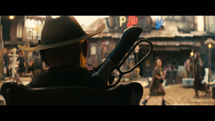 * Similar to the 4K edition, the first episode ("The End") exhibits stray signs of macro blocking and occasional chunky grain; this especially holds true where true blacks and brightest whites are concerned. Depending on the sensitivity and size of your setup, not to mention video settings, these issues may be more visible to some while others might barely notice them at all in motion. Their appearance ironically may not be quite as obvious on Blu-ray due to lower resolution and expectations, yet they're still visible and thus worth mentioning. This keeps Fallout out of five-star territory but it isn't a deal-breaker, especially since this intermittent problem doesn't seem to noticeably affect other episodes.