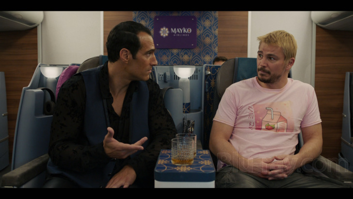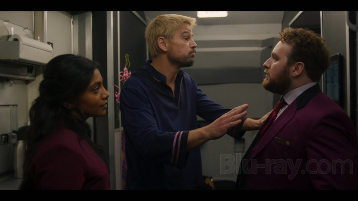 The DTS-HD 5.1 Master Audio mix -- thankfully not Dolby Digital 5.1, as listed on the packaging -- likewise brings the goods, offering a supportive amount of sonic weight during action sequences as well as light but appreciate ambiance in more comparatively quiet moments. Channel panning and discrete effects are ample during the former, especially by way of a handful of shootouts, at least one breach of the airplane's cabin, and one drug-induced freak-out. Otherwise, Fight or Flight takes a decidedly more front-forward approach; most dialogue is anchored right in the center, whereas surround channels are largely reserved for the original score by Paul Saunderson as well as few choice cuts by Elvis Costello and The Attractions, Lesley Gore, The Clash, and ya boi Johann Strauss. Crank it up and enjoy!