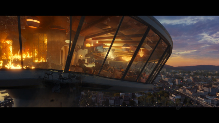 Final Destination: Bloodlines arrived to theaters with a true 4K Digital Intermediate, and Warner Bros.' excellent 2160p/HDR10/Dolby Vision transfer seems well-equipped to deliver a true theatrical-grade experience on disc. The handsomely-shot extended opening is obviously a standout, as Skyview's luxurious atmosphere (and the subsequent fallout, of course) make for perhaps the franchise's most memorable sequence since a certain plane explosion and log truck all those years ago. But fine detail, color, texture, and shadows are all nicely appointed here, giving facial close-ups and grisly deaths an alternately pleasing and disturbing level of detail that's only hampered by a few stray dodgy effects. HDR adds punch in all the applicable areas, especially fire and explosions as well as bright lights against the darkness. Disc encoding is very good too, as Bloodlines gets a decent amount of room to breathe even on a modest dual-layered disc; this proves to be more than sufficient real estate for just over two hours of total content, as the main feature runs at a decently supportive bit rate from start to finish. Stray posterization and black crush could be spotted during occasional moments where shadows overwhelm the picture, but these two issues are extremely few and far between and could likely be part of the cinematography. Either way, it's a more than solid effort.