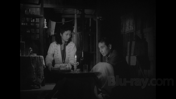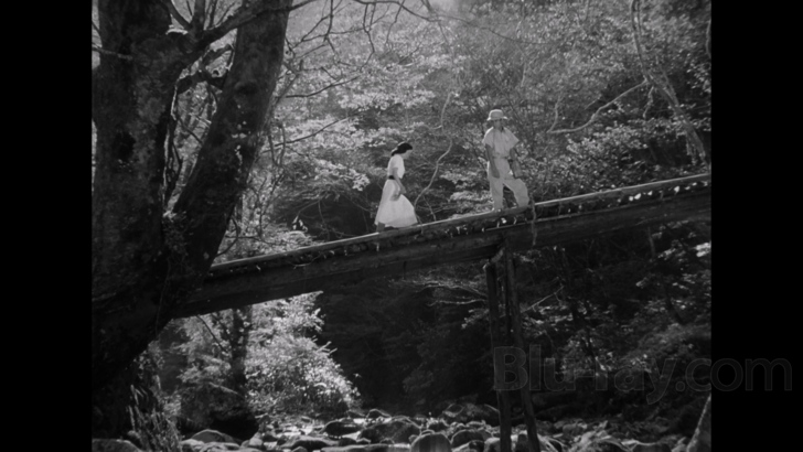 Floating Clouds has been restored by Toho Co., Ltd. in 4K resolution and is presented in High Definition in its original aspect ratio of 1.37:1 with original mono audio.I watched the film separately in 1080p and upscaled to 4K on my region-free Sony Blu-ray player. While I don't have the BFI's 2007 DVD to compare, this restored transfer is nothing short of stunning and almost perfect. Whites look silky and the grayscale levels are luminous. Grain and texture appear natural. Contrast is remarkably good considering there are a lot of dimly-lit scenes with candles or sparse natural light present. There are some very small specks in one scene. I also noticed a few damage marks that crop up during a scenic transition that could have been present for a reel change on the print Toho used. But all in all, the transfer is mostly speckless. This MPEG-4 AVC-encoded BD-50 boasts a mean video bitrate of 36921 kbps. My video score is 4.75/5.00.