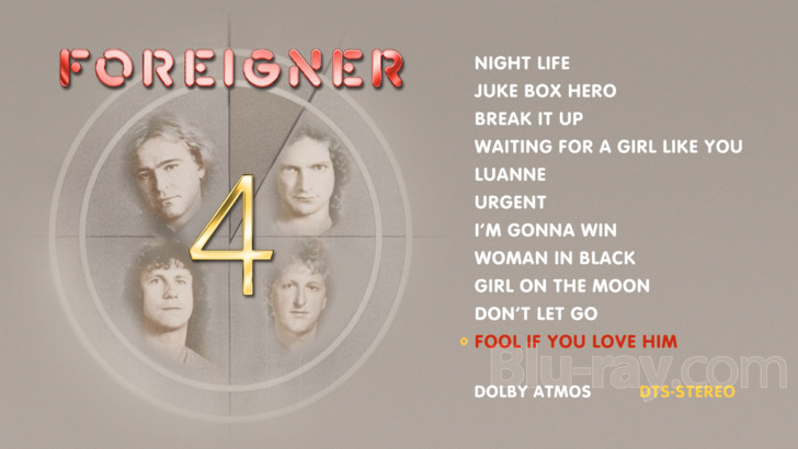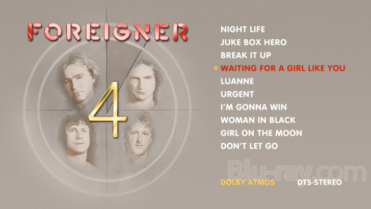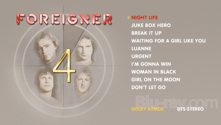 Foreigner 4 features Dolby Atmos and DTS-HD Master Audio 2.0 options, and my hunch is the only complaint some fans may have with this release is that the original stereo mix is not included on either the audio Blu-ray or any of the CDs. That said, both of the options on the Blu-ray are beautifully rendered, and while going from a CD player to a Blu-ray player is not the most authoritative (let alone convenient) way to do a "side by side" comparison, I didn't hear anything so odd in the stereo remix that it caught my attention. The Atmos mix is really nicely spacious and has clear engagement of the side and rear channels throughout. Several nice moments, like those diaphanous synths that begin Waiting for a Girl Like You, also nicely waft overhead in the Atmos version. There's also really appealing discrete channelization at times, as in (more) synth punches emanating from the rear speakers in Night Life, while guitars blast out of the front speakers. Gramm's inimitable voice soars above everything, though backups are really well splayed (tending toward the rear) and to my ears a bit more evident in the Atmos version than the stereo.