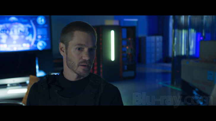 Fortress: Sniper's Eye is presented on Blu-ray courtesy of Lionsgate Films with an AVC encoded 1080p transfer in 2.39:1. The IMDb has no relevant technical data, but the Making Of featurette included on this disc as a supplement shows a fleeting shot of what looks like a Red camera, and I'm assuming the DI was finished at 2K. This is a competent capture that preserves generally excellent detail levels throughout, but there's still not a lot of visual "wow" in the effort. Some interstitial flashbacks have been kind of interestingly graded to a somewhat unusual yellow- green color, and that gives those moments a slightly unnatural, quasi-exotic, appearance. A lot of the "contemporary" footage is graded toward "thriller blues", especially some of the supposed high tech environments. Fine detail on things like fabrics tends to be very good throughout. There are some very slight flirtations with banding in some sudden light changes, but nothing really significant.