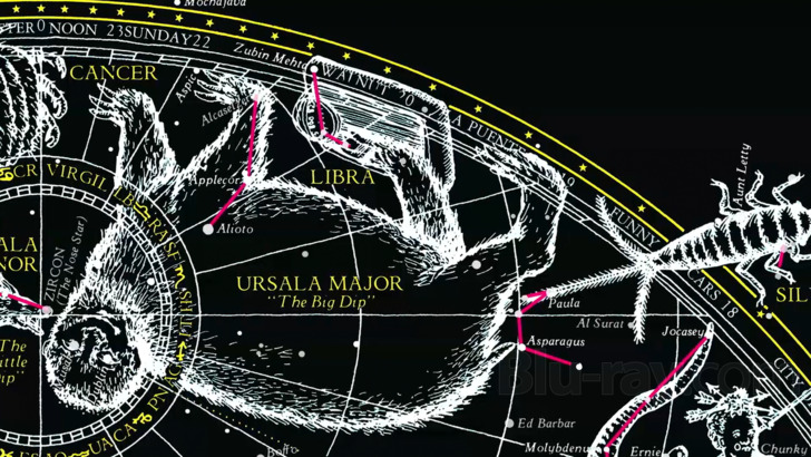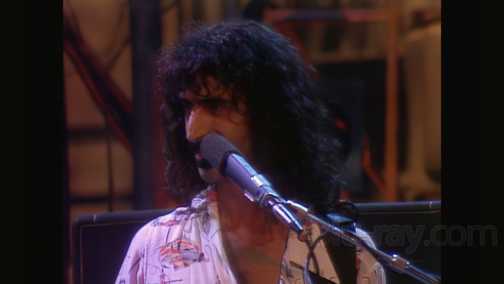 One Size Fits All actually has two video components, an animated menu, and a couple of bonus videos (see the supplements section, below, for more information). Screenshot 10 shows the main menu the disc boots to. Once Play or an individual track is chosen, though, the menu then has a series of really fun images that will keep those inclined on their toes trying to read all of the perhaps questionable "data", for example, not to mention the bizarre array of other images that accrue (along with a few photos of the band members). The menu is basically as slideshow that loops, but it's varied enough that it actually takes a while to get back to where it begins. All of the material on the menus is great looking. The bonus videos offered on the Blu-ray are obviously sourced from older videotapes and have a number of "usual suspect" anomalies like banding and combing artifacts, but also in this case a bit of ghosting. The score above is an average for the entirety of the video content, menus and bonus material.