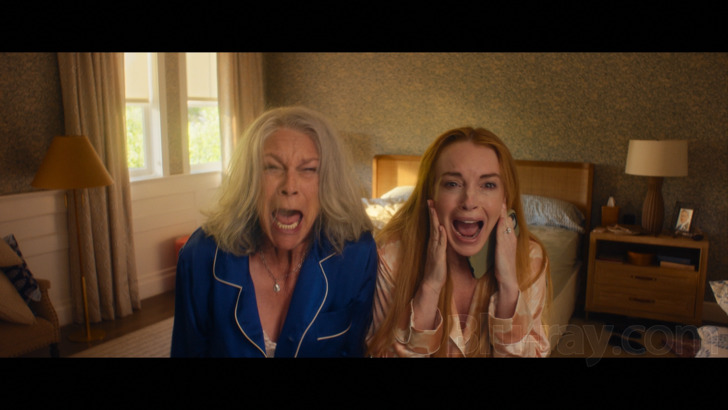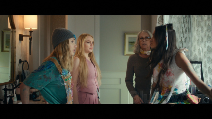 Freakier Friday is presented on Blu-ray courtesy of Disney / Buena Vista with an AVC encoded 1080p transfer in 2.39:1. Arri gets a credit in the closing roll, and the IMDb specifies the Arri Alexa 35 was utilized with a 4K DI (maybe a bit surprisingly, given no 4K UHD release as of the writing of this review). The result is very colorful and well detailed, with the surplus of sunny outdoor California scenes popping extremely well, but with some rather interesting lighting and grading choices utilized at times, notably in some of the club material. Bold primaries in particular really are outstandingly vivid throughout the presentation. Fine detail on admittedly everyday items like clothes and sets is typically excellent. There were a couple of almost unnoticeable curious quasi-combing artifacts that would seem to be at odds with a progressive presentation that very briefly caught my eye, but otherwise this is a great looking presentation of a film that offers a few flourishes in style, but isn't overly "showy".