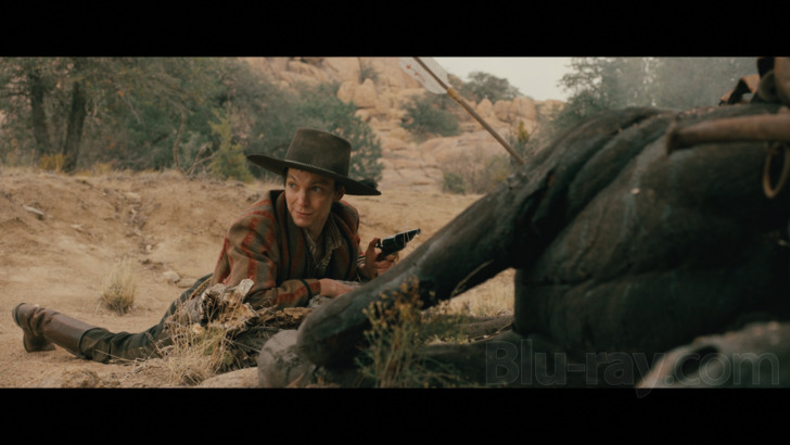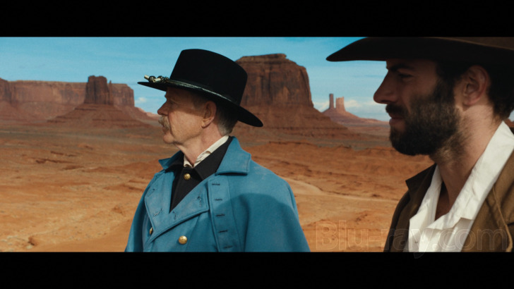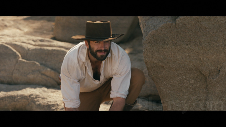 Frontier Crucible features an enjoyably immersive Dolby Atmos track, though the film's low budget may have slightly constrained the ambitions of the sound design here. This 4K disc also has a DTS-HD Master Audio 5.1 option (Well Go USA's 1080 disc has Dolby Atmos and Dolby Digital 2.0 options). The entire film takes place outside, and the Atmos track delivers a believable and spacious account of background ambient environmental sounds, which despite the overall barren plains setting does include some water here and there. Things like galloping horses and Merrick's wagon rolling through the desert offer decent panning effects. I just frankly was not a big fan of Sean Rowe's song score, but all of the music has nice fidelity and some fairly wide imaging. Dialogue is rendered cleanly and clearly throughout. Optional English subtitles are available.
