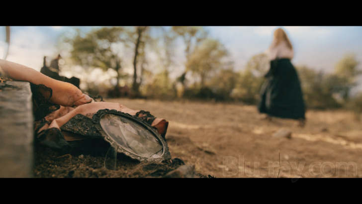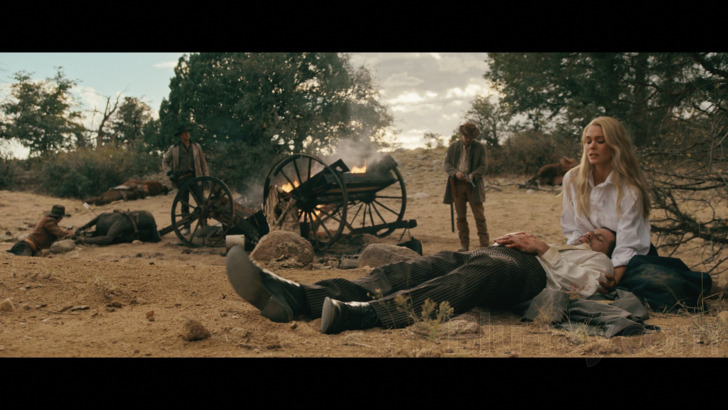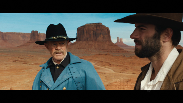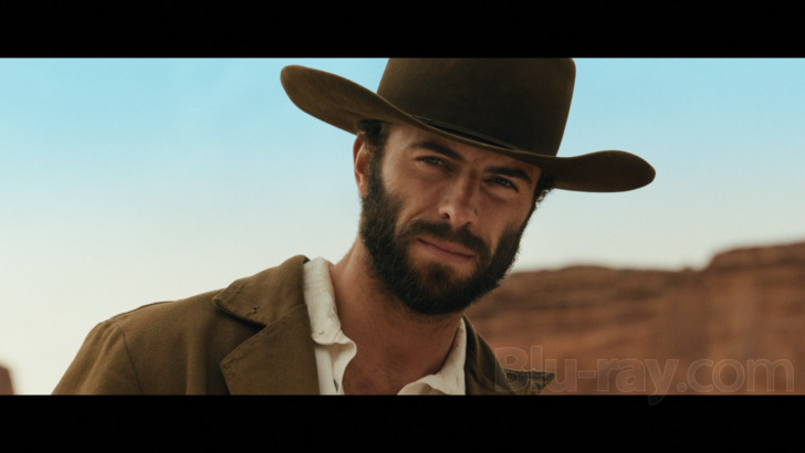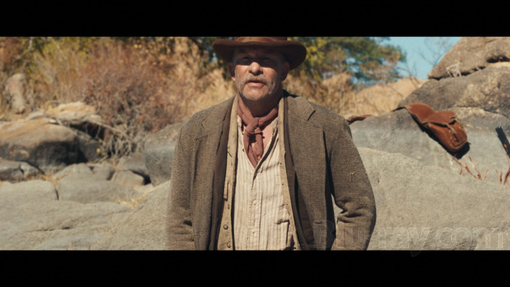 Frontier Crucible features an enjoyably immersive Dolby Atmos track, though the film's low budget may have slightly constrained the ambitions of the sound design here. This 4K disc also has a DTS-HD Master Audio 5.1 option (Well Go USA's 1080 disc has Dolby Atmos and Dolby Digital 2.0 options). The entire film takes place outside, and the Atmos track delivers a believable and spacious account of background ambient environmental sounds, which despite the overall barren plains setting does include some water here and there. Things like galloping horses and Merrick's wagon rolling through the desert offer decent panning effects. I just frankly was not a big fan of Sean Rowe's song score, but all of the music has nice fidelity and some fairly wide imaging. Dialogue is rendered cleanly and clearly throughout. Optional English subtitles are available.