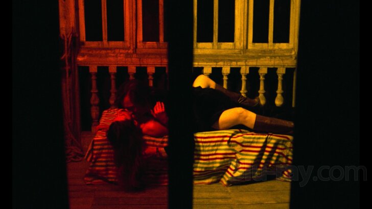 After the sexual fireworks, one of the hitchhikers falls asleep, while the other goes out to have a smoke and accidentally discovers that there is someone else in the mansion. This event resets