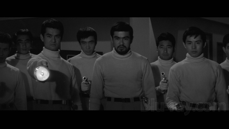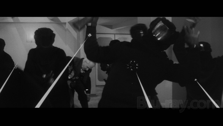 Released on Blu-ray by Shout Factory, Golden Ninja is presented in 1080p MPEG-4 AVC encoded high-definition in the original theatrical aspect ratio of 2.35:1 widescreen. The release features a quality black-and-white presentation. The release showcases crisp and well detailed high-definition video encoding. The transfer is filmic and engaging looking. There are some specks of dirt and even some slight damage to the print is visible – a few transition shots can look a bit soft during transitions but an excellent transfer overall.