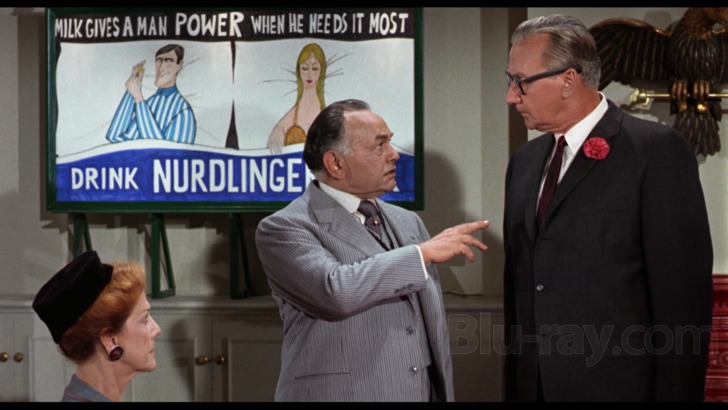 Good Neighbor Sam features a DTS-HD Master Audio 2.0 Mono track that is obviously inherently narrow, but which has considerable depth in terms of both music (the Hi-Lo's sound great in the would be Hertz commercials, and the film also features a bouncy theme by the reliable Frank De Vol which both calls back to his memorable theme for My Three Sons as well as presaging his theme for Family Affair), and occasional sound effects, like the goofy mobile Sam has built in his backyard. Dialogue is rendered cleanly and clearly throughout this problem free track. Optional English and French subtitles are available.