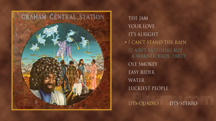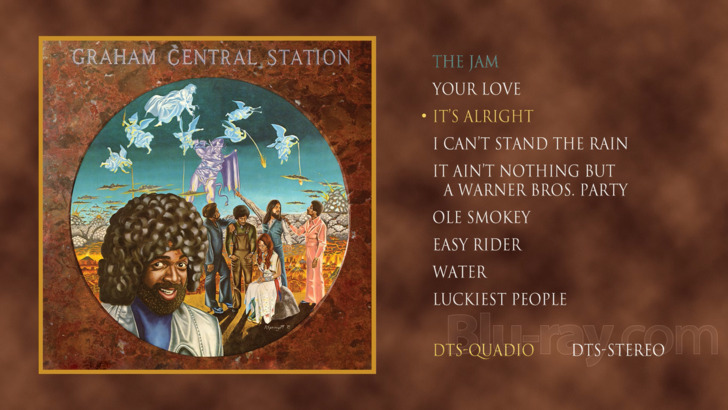 Graham Central Station: Ain't No Bout-A-Doubt It features DTS-HD Master Audio 4.0 and DTS-HD Master Audio 2.0 options. This album is arguably the showiest in terms of actual directionality and discrete channelization of the four albums in Rhino's latest batch of Quadio releases. From the opening cacophony of effects and instruments almost erupting from the rear channels in The Jam, which is soon followed by engagement of the front channels for even more mayhem, there is some really fun movement throughout this album in terms of instrument placements. Massed vocals tend to be anchored more toward the front channels, but even they can spill invitingly into the rear, helping to surround the listener with both solo and choral moments. But it's the punchy instrumentation that will probably be most immediately apparent, and all of the traditional band instruments like keys, guitars and percussion are placed variously around the soundstage throughout the album. I mentioned in the The Modern Jazz Quartet: The Last Concert Blu-ray review how that particular Quadio production tended to offer more of a "wall of sound" where everything is everywhere all at once (so to speak), and this album's quad version is quite different in that regard, achieving the same "monumental" cohesive quality but this time more by building the edifice out of clearly channelized elements.