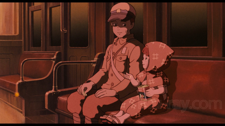 A Japanese 2.0 DTS-HD MA mix is the default track for "Grave of the Fireflies," and it remains an engaging listening experience. Dialogue exchanges are crisp, with satisfactory balance of emotional moments. Scoring supports with clear instrumentation and dramatic emphasis. Atmospherics are compelling, examining elements of nature and community activity, and there's a wider sense of war at times. Alos included on the release is a 2012 2.0 DTS-HD MA English dub, and a 1998 2.0 DTS-HD MA English dub.