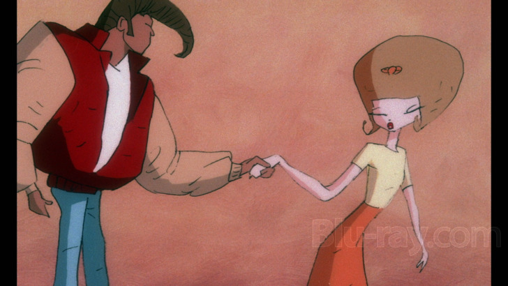 Hair High is beautiful romance at its core. The romantic element of the storytelling is one of the best attributes of the film. There is a sense of passion between the leading characters and their romantic storyline. Plympton cares deeply about the characters and their relationship. The beauty of the storytelling is in these characters journey and the fable-like quality that becomes essential as the storyline progresses and enters the last stage of the film. The last act of the feature-film is especially beautiful and surprising there is a romantic element that is so unusual and quirky that it makes the film stand out as one of the best creations by Plympton.