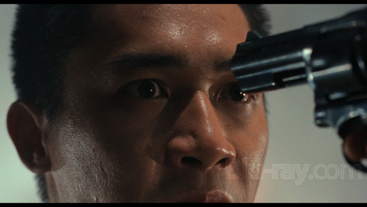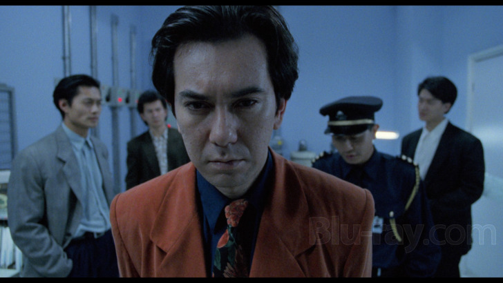 Hard Boiled is presented in its original aspect ratio of 1.85:1 with Cantonese and English mono audio and a new Cantonese Dolby Atmos mix. The film has been restored in 4K resolution and graded in HDR10 and Dolby Vision.While the Shout! Studios masthead at the opening of this film might suggest this is a carbon copy of that label's release, as James White has shared, Arrow once again did extra work on the master they were provided. While Stephen Larson gave top marks to Shout!'s release, there have been some pretty vocal and more decidedly negative reactions from longtime fans of the film, specifically decrying what they feel is a too warm accounting of the film's often ice cold blue tinged palette. As White has shared with yours truly, while Shout! is to be commended for its epic work delivering Golden Princess restorations in record time, Arrow has the luxury of more time, and in this particular instance (to quote White directly), "we felt it was important to entirely re-grade the film to match the historic references that we were familiar with. The colour grading that Shout! did for their release relied on different references that didn't match our own experience in viewing the film on 35mm in the 1990s". While I'm never one to rely completely on my memories of having seen theatrical exhibitions, especially as long ago as I saw this film in a theater, the cooler ambience on display in Arrow's release aligns with those memories. While the obviously blue graded material resonates beautifully here, HDR and Dolby Vision can subtly alter some of the less overt uses of cool tones, as in some of the background sets in offices. Detail levels are frequently astounding, as in some extreme close-ups (even with skewed lenses and the like) that can offer precise looks at things like faces or hands. Even picayune details like the louvered blinds in the office have increased precision. Longtime readers of my reviews know I'm not always a fan of how grain looks in 4K and HDR, but this is a really beautifully tight grainfield that adds suitable texture without ever looking overly noisy.