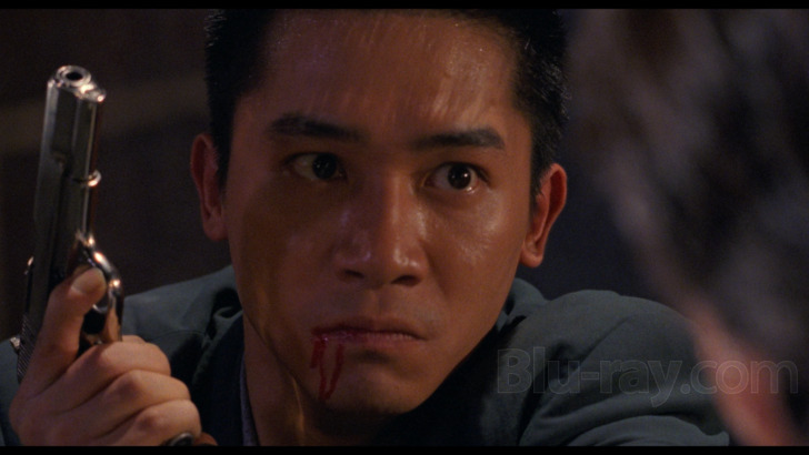 Arrow provides Hard Boiled with a new Dolby Atmos track in Cantonese, along with Cantonese LPCM Mono and English DTS-HD Master Audio Mono options. The vestiges of the original mono mix just can't be completely erased in the new Atmos rendering, and a lot of the soundtrack still tends to be front and center. You can definitely hear things open up, if maybe marginally, as early as the opening credits when the music starts, with the piano in particular spilling into the rear channels. Effects begin to populate the surround channels fairly early on as well, with the birdcall and walkie talkie material offering some surround activity. Perhaps surprisingly, then, the first big shootout doesn't offer any stupendous engagement toward the rear of the soundstage, though occasional bursts of machine gun fire can offer snippets of directionality. Several later eruptions of gunfire can also offer discrete channelization for individual trigger pulls, but anyone expecting a whirlwind of surround activity on this track may have to temper those expectations. All of this said, the Atmos and LPCM Mono Cantonese tracks both offer nice fidelity and some very appealing dynamic range. Dialogue is rendered cleanly and clearly throughout. Optional English subtitles are available.