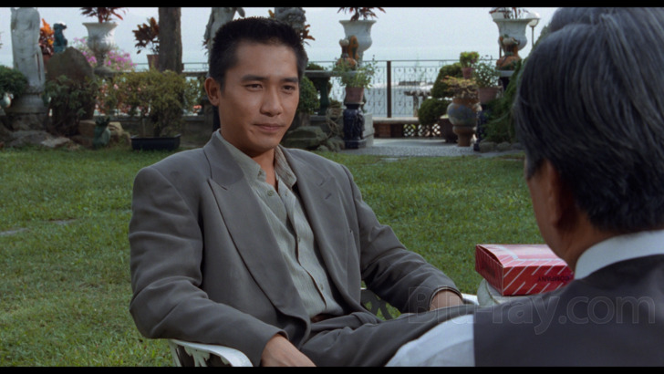 Arrow provides Hard Boiled with a new Dolby Atmos track in Cantonese, along with Cantonese LPCM Mono and English DTS-HD Master Audio Mono options. The vestiges of the original mono mix just can't be completely erased in the new Atmos rendering, and a lot of the soundtrack still tends to be front and center. You can definitely hear things open up, if maybe marginally, as early as the opening credits when the music starts, with the piano in particular spilling into the rear channels. Effects begin to populate the surround channels fairly early on as well, with the birdcall and walkie talkie material offering some surround activity. Perhaps surprisingly, then, the first big shootout doesn't offer any stupendous engagement toward the rear of the soundstage, though occasional bursts of machine gun fire can offer snippets of directionality. Several later eruptions of gunfire can also offer discrete channelization for individual trigger pulls, but anyone expecting a whirlwind of surround activity on this track may have to temper those expectations. All of this said, the Atmos and LPCM Mono Cantonese tracks both offer nice fidelity and some very appealing dynamic range. Dialogue is rendered cleanly and clearly throughout. Optional English subtitles are available.