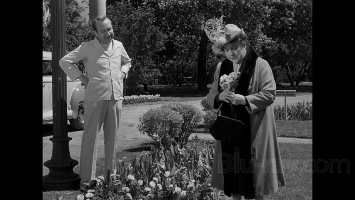 Harvey 4K has been paired with the same DTS-HD Master Audio 2.0 Mono track that first appeared on the Blu-ray release from 2012. While some may balk at this fact, it's fair to say the track rather nicely marries up with the film and crafts an authentic, vintage listening experience. Dialogue is cleanly rendered without any defects or anomalies. Musical elements found in the opening credits and various transitional moments in the film, by virtue of this being a 2.0 mono track, handle mid-range and treble elements well enough, but obviously lack any meaningful bottom end. The same holds true for sound effects, which are almost exclusively limited to mundane, everyday sounds such as slamming doors, footsteps, and, due to the setting of several scenes, a shrill alarm bell, but their reproduction here is certainly era-appropriate. It's a more than adequate, workman-like track.