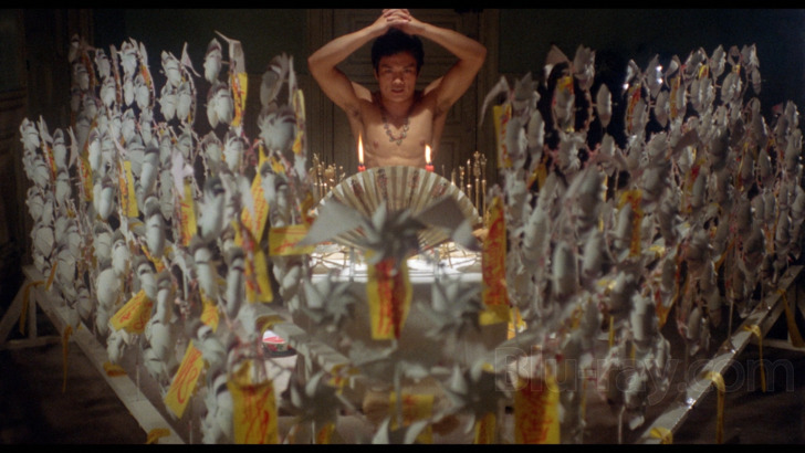 All sixteen films in this boxset are presented in their original aspect ratios (all 2.35:1 except for Bewitched, Hex After Hex and Seeding of a Ghost in 1.85:1) with their original Mandarin and/or Cantonese and/or English monaural soundtracks. Every effort has been made to present these films in their original and complete versions using the best materials available.Hex After Hex may not offer quite the same level of consistent pop that Hex vs. Witchcraft does, but it can still have considerable vividness to the palette, especially with regard to primaries (several of the screenshots show up some of the nice looking reds and blues). This whole presentation struck me as just slightly softer looking than Hex vs. Witchcraft, though fine detail on props and costumes is still quite good even in midrange framings, and notably in close-ups. There's some brief animation as seen in screenshot 6 that isn't exactly at Disney levels of competence or artistry. Grain resolves without any issues.